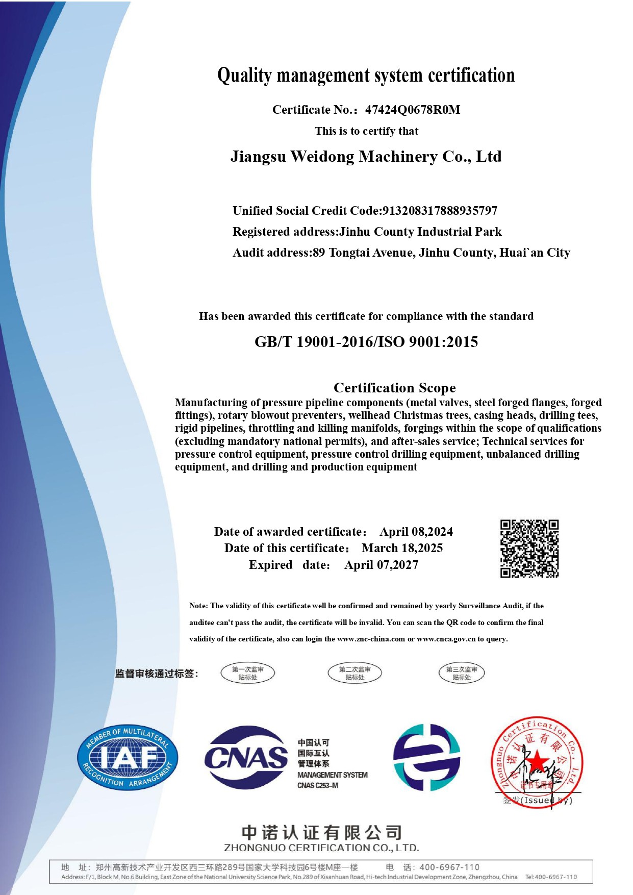 Jiangsu Weidong Machinery Co., Ltd Address: No. 89, Tongtai Avenue, Jinhu County, Jiangsu ProvinceTelephone:0086-517-87109909website:www.jswdjx.net